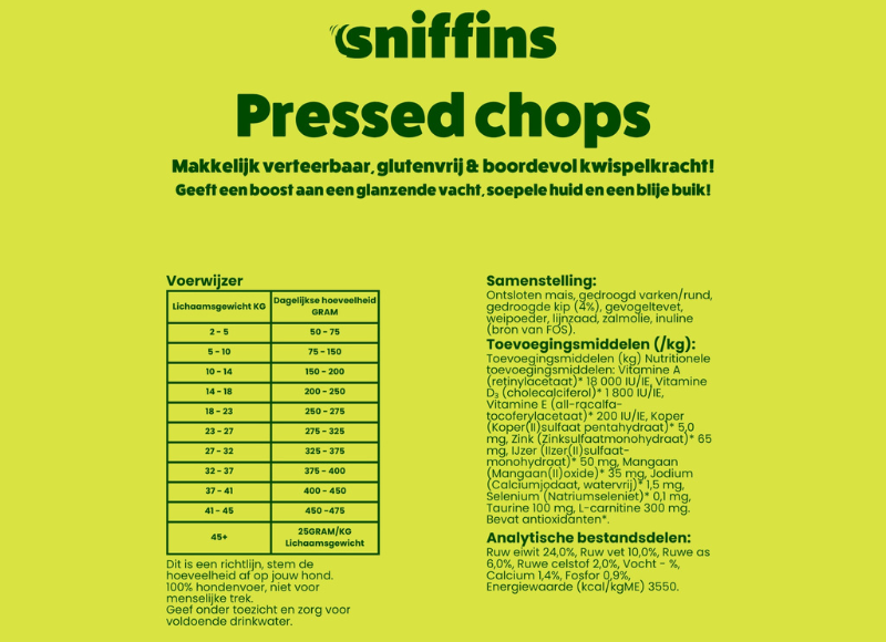 “Super goede service. Mijn hond vindt de crunchy chops brokken zo lekker. Als mijn hond tevreden is ben ik dat ook!! Eén abonnement bij sniffins is echt een aanrader!”